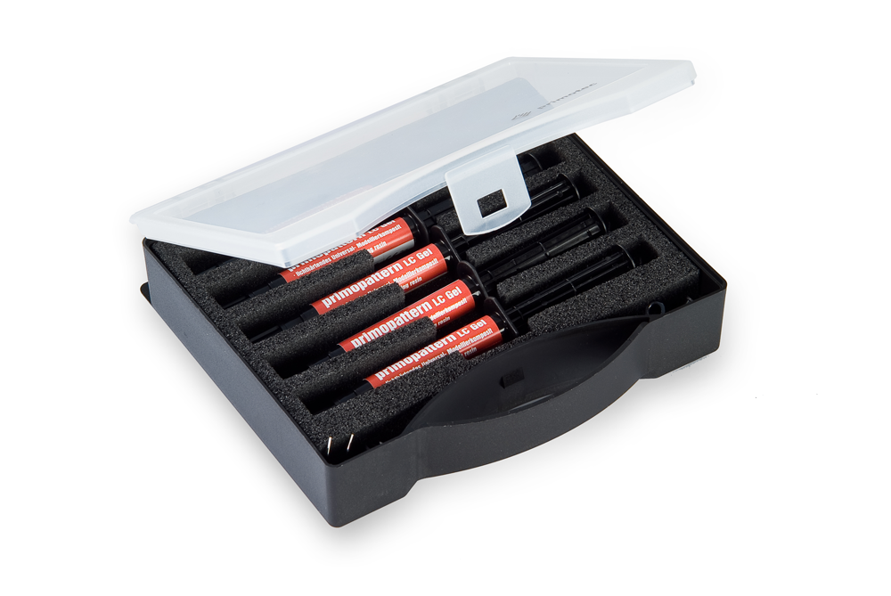 Arbeiten Sie mit der primopattern LC Paste um effizient größere Materialmengen aufzutragen (z.B. für Stege, Zwischenglieder, etc.).