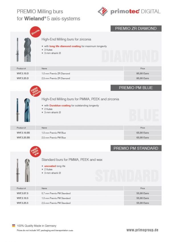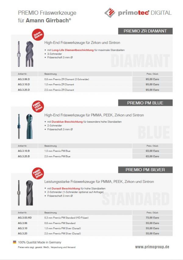 Increase quality and productivity of your CAD/CAM milled cases with high-end precision tools from primotec