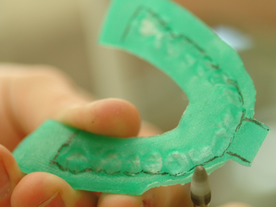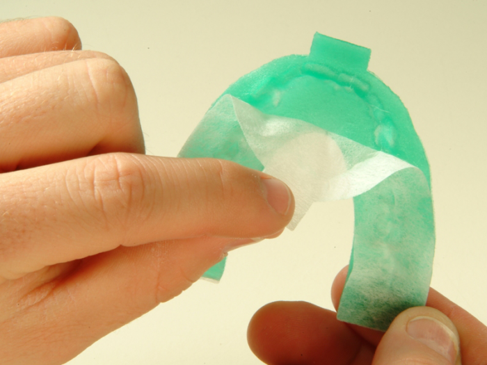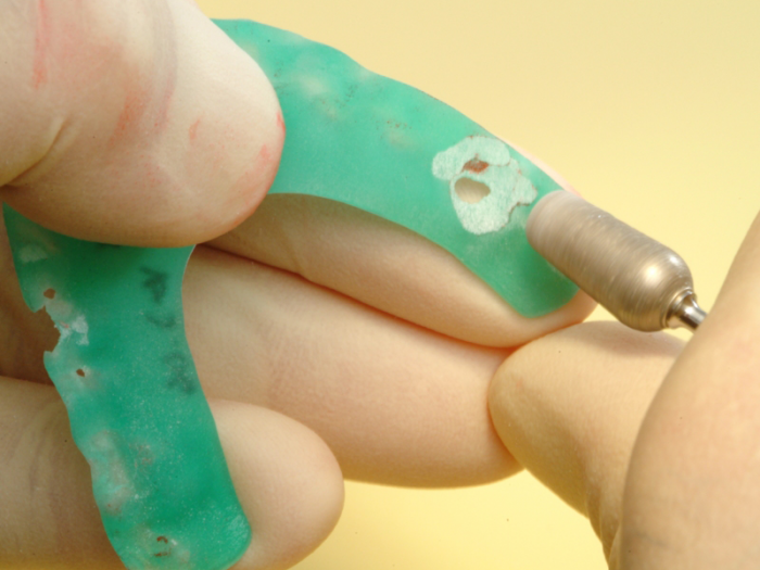 Developed in cooperation with Dr. Diether Reusch / Westerburg. primobyte centric bite registrates consist of two components, the green centric registration base plate and the blue detail paste (for the actual centric stops).